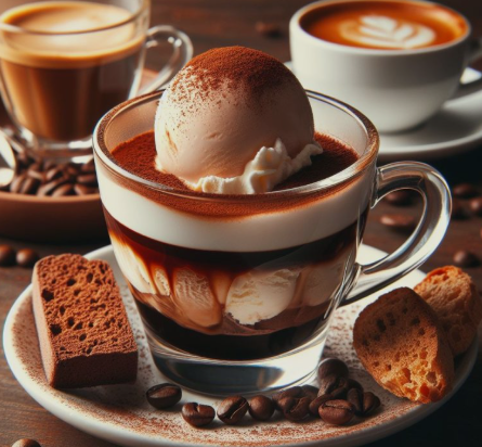 دسر-نوشیدنی جذاب ایتالیایی که از یک اسکوپ بستنی وانیل و یک شات اسپرسو داغ تشکیل می‌شود. ترکیبی از سرد و گرم که طعمی فوق‌العاده لذیذ می‌سازد.